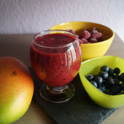 Dieser Smoothie ist von der Konsistenz her etwas dickflüssiger aber nicht so schwer. Geschmacklich ist er sehr fruchtig und süß. Sehr lecker!