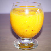 In diesem Smoothie treffen die exotische Süße der Mango und das Säuerliche der Orange aufeinander, abgerundet durch den Pfirsich. Der Smoothie sieht nicht nur appetitlich aus, sondern schmeckt auch unheimlich fruchtig.
